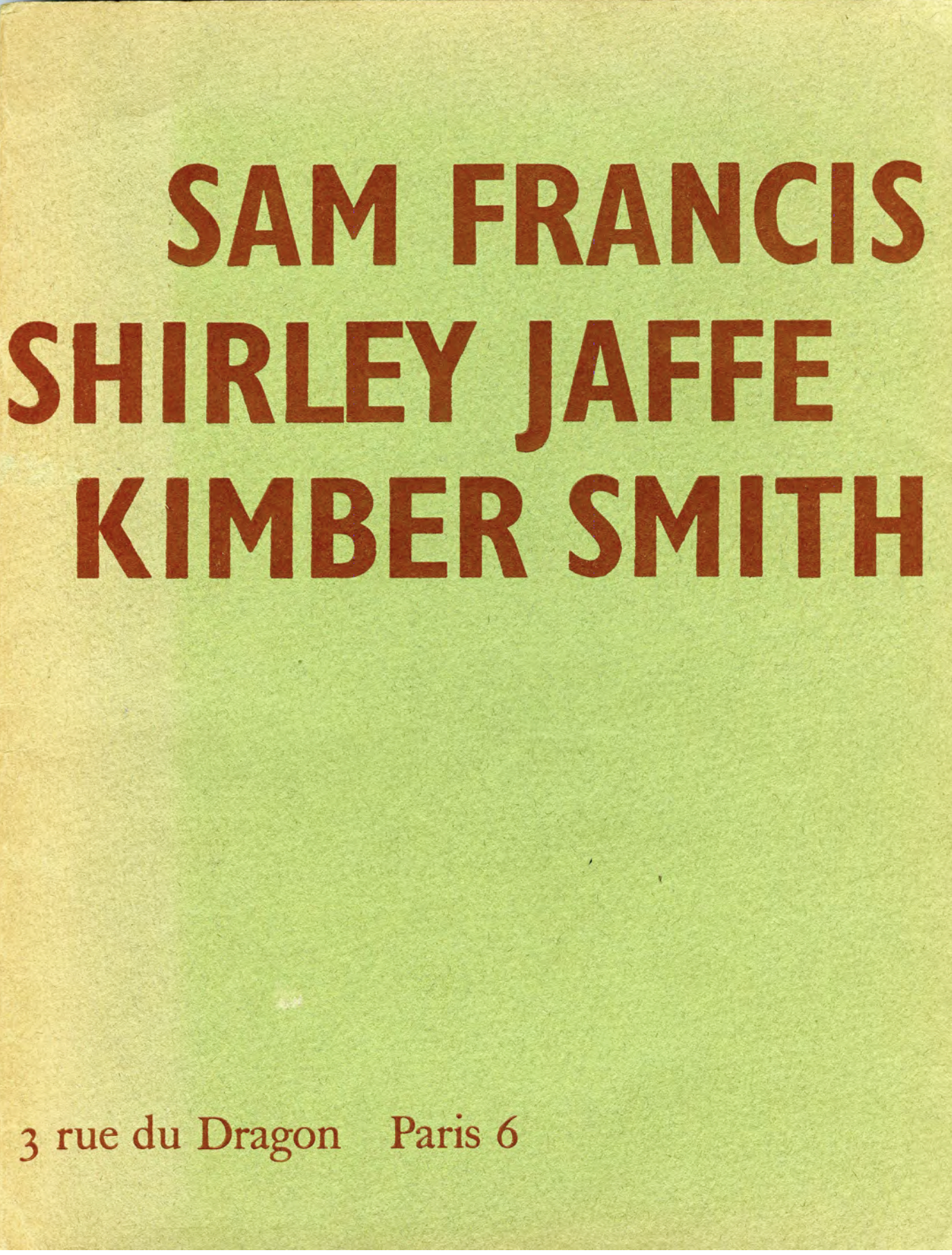 Francis and Jaffe grew to be close friends even after he moved away from Paris in the early 1960s. The two artists were in four group exhibitions together and it was Francis who was responsible for introducing Jaffe to the renowned Parisian gallerist Jean Fournier, whom they would both be represented by for many years.